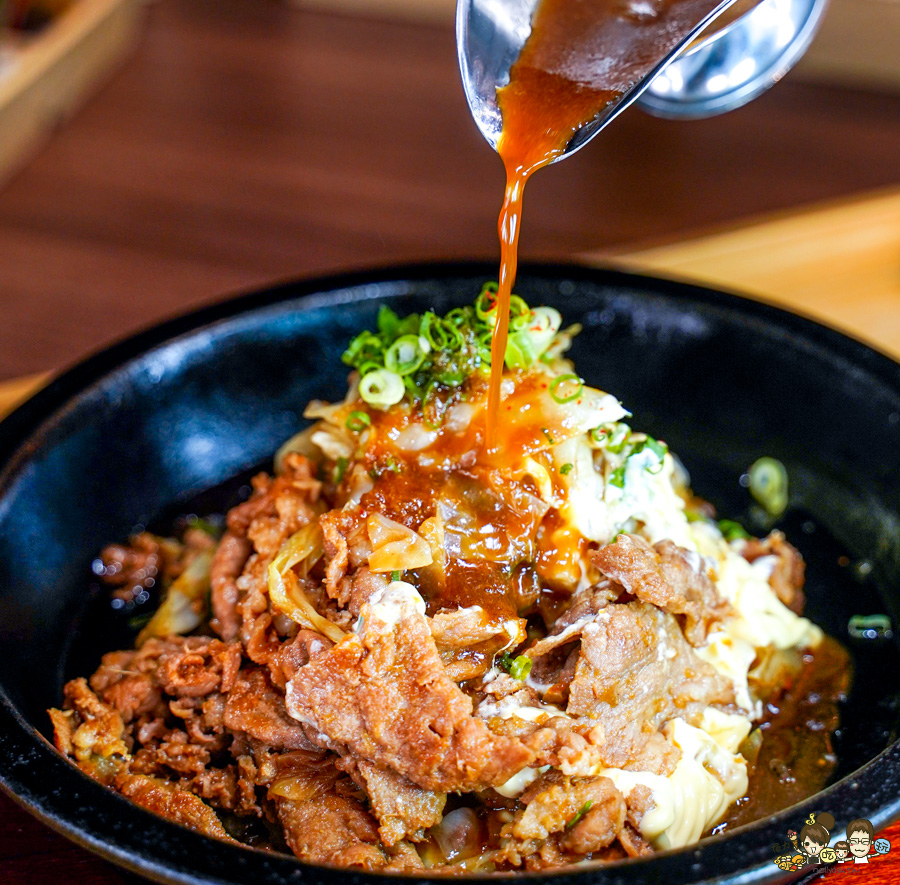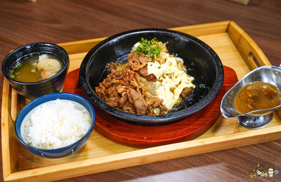 偽豬排豆腐菇菇、酥炸豬排滑蛋、味噌豚烤野菜、臭臭黑牛魔王、生薑燒肉、溫泉蛋被燒肉綁架