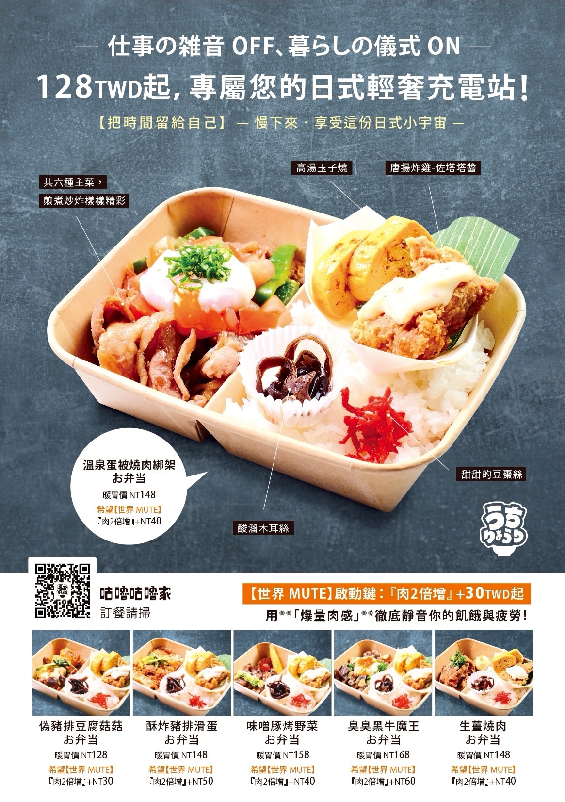 咕嚕咕嚕家推出的六款超值便當,價格 128~168 元