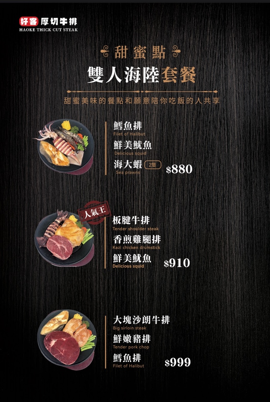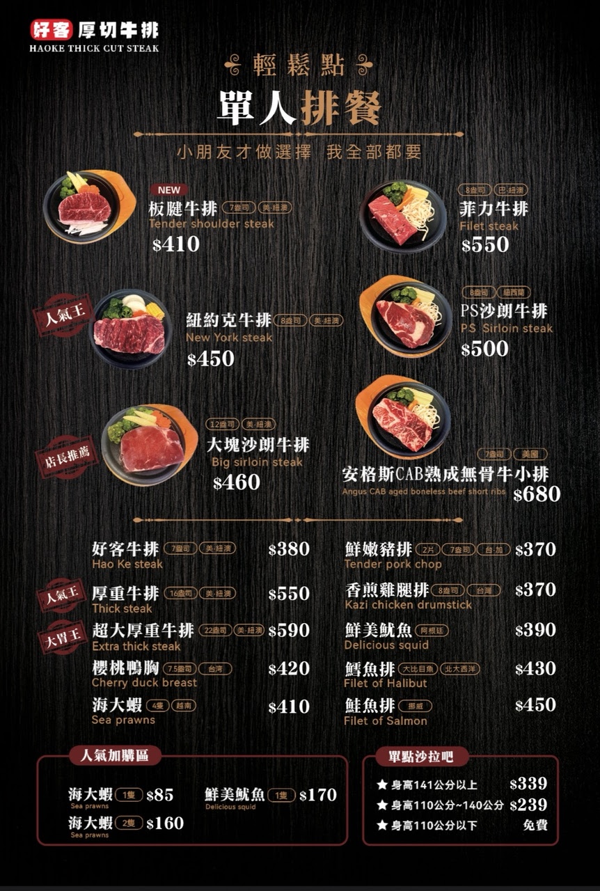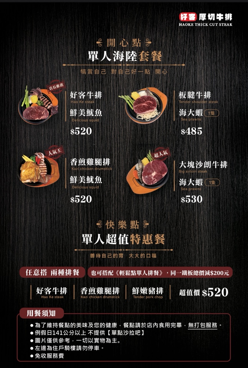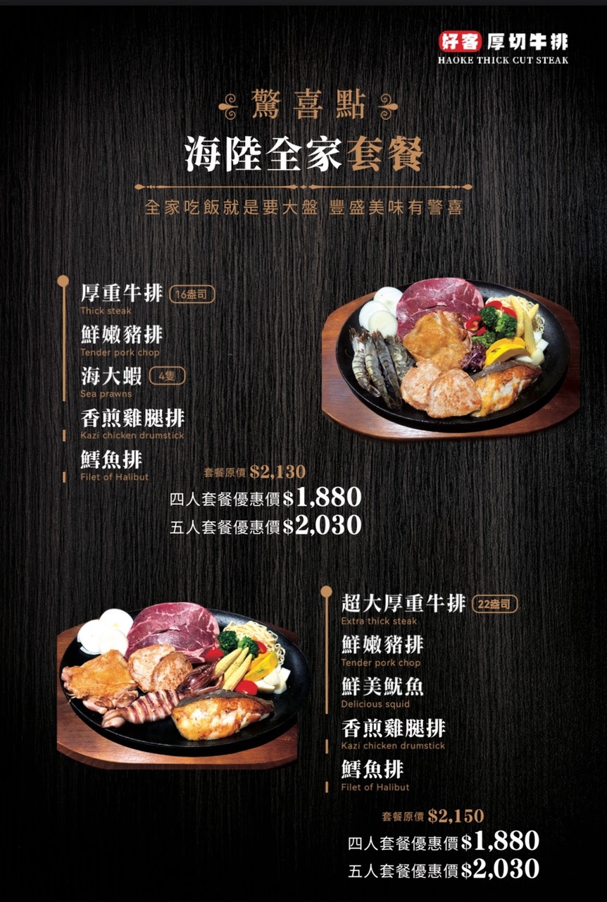 好客牛排 菜單 (依據現場實體為主)
