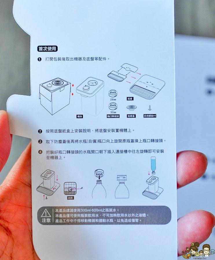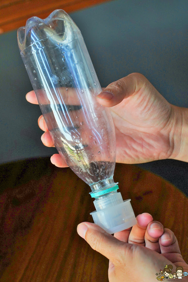 把瓶裝水直接按壓然後順時鐘旋轉,就可以開始使用~