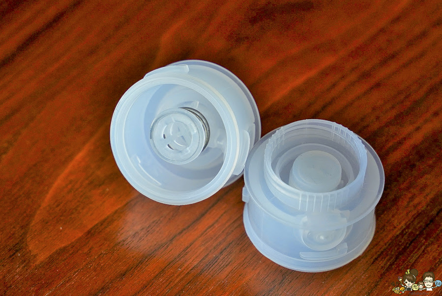 提供兩個瓶口轉接頭,分別直徑 28mm、30mm,依據不同的瓶裝水口來做更換