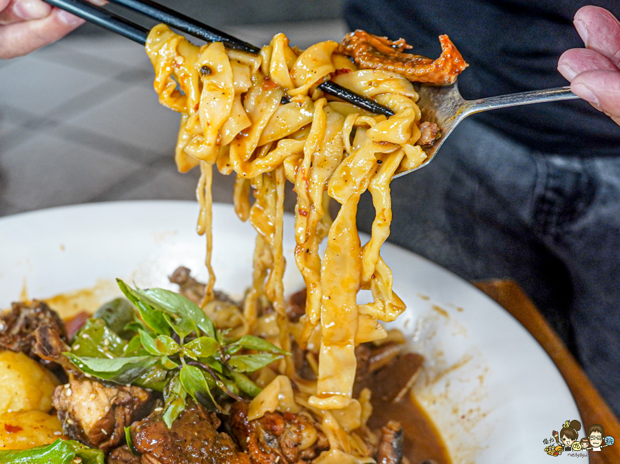 整個寬麵都會吸附最精華的醬汁,每一條都帶有Q度咬勁