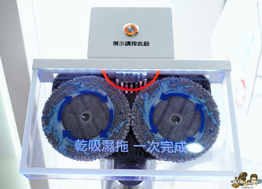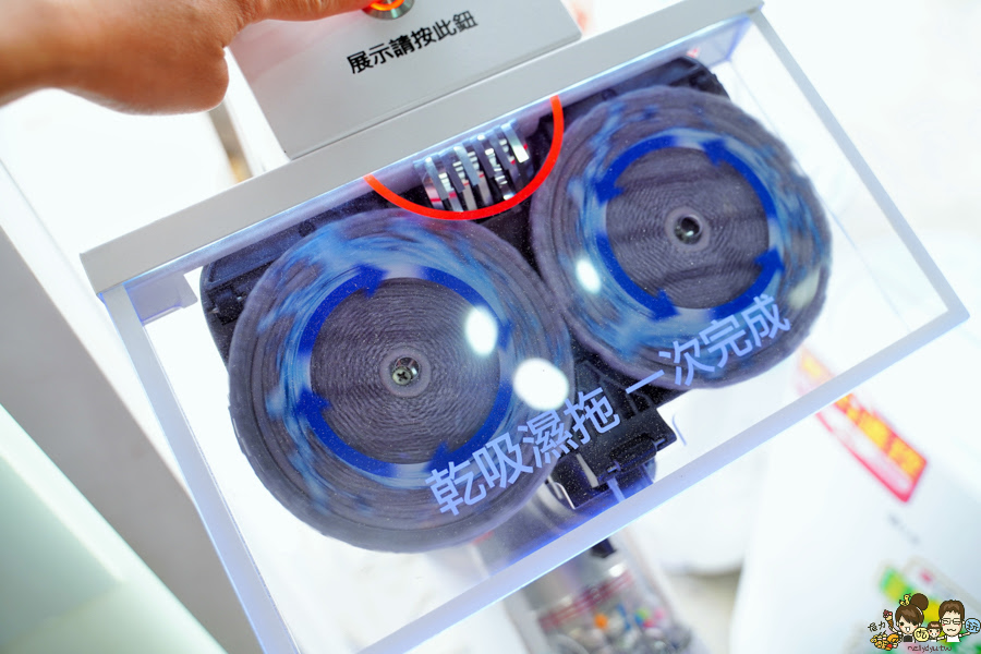 現場還有機器內部的運轉展示機,讓民眾更能了解乾吸濕拖一次能完成搞定