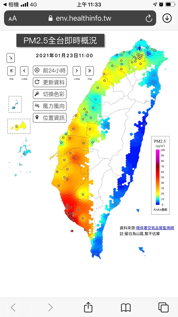 就可以馬上看到全台空氣指數,高雄真的是紫爆了!