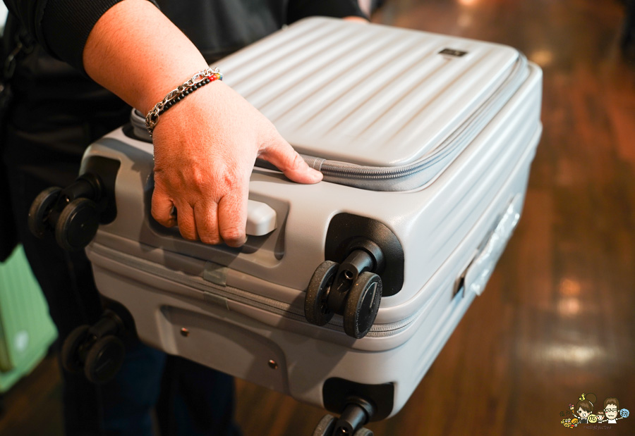 現場挑選時,記得實際測試推拉的順暢度(建議找 360 度靜音飛機輪)及拉桿是否搖晃