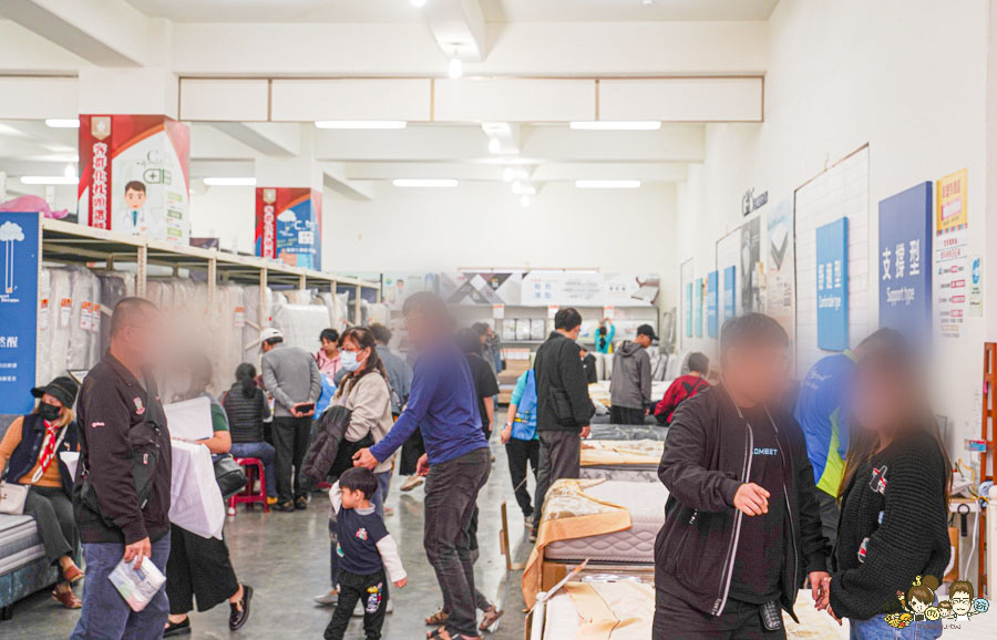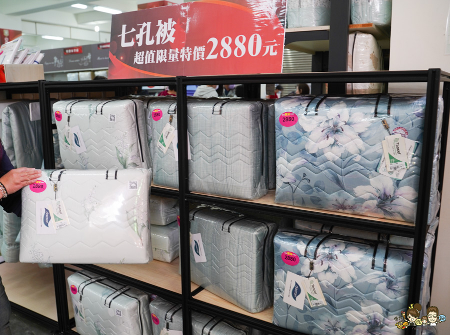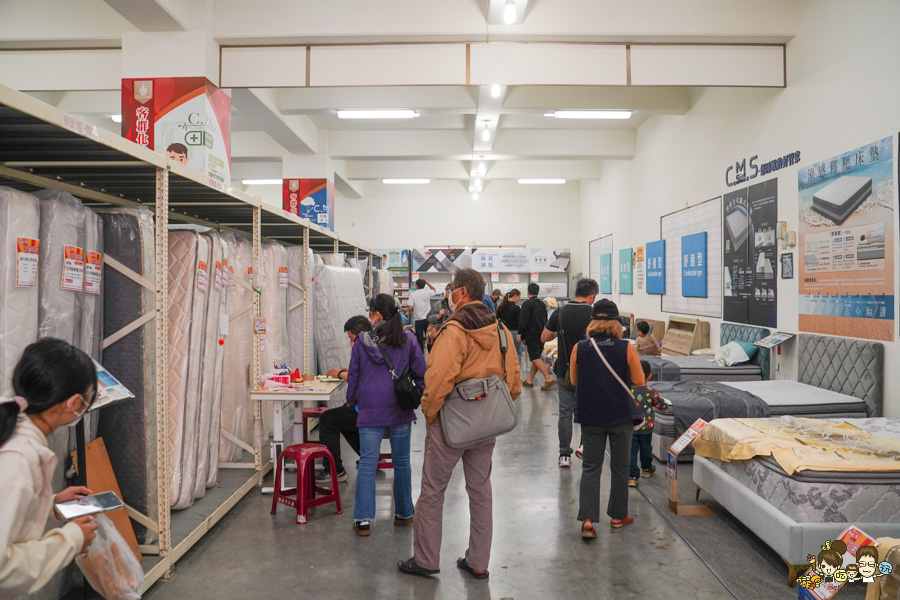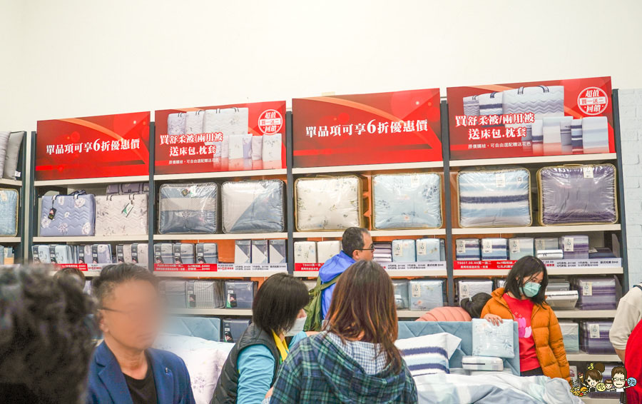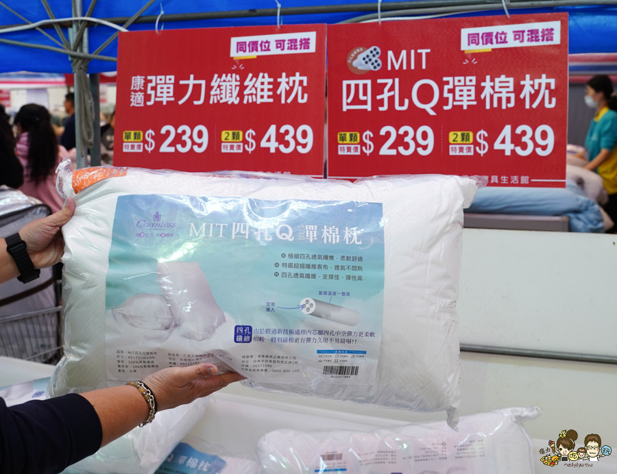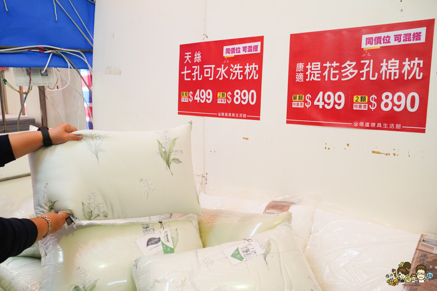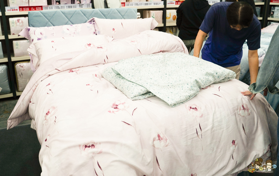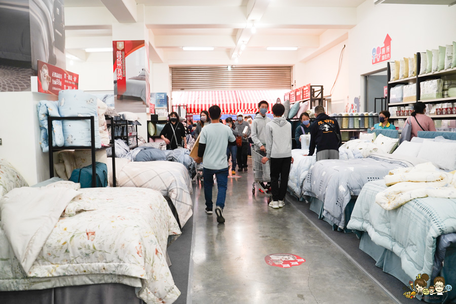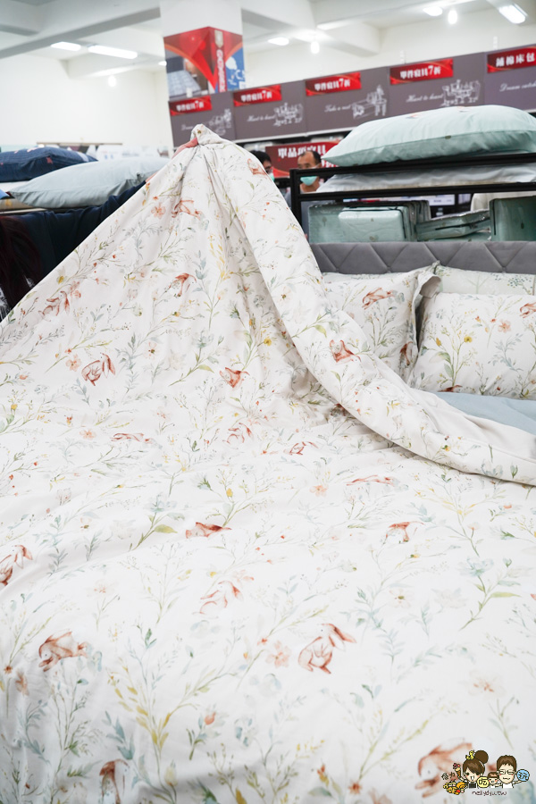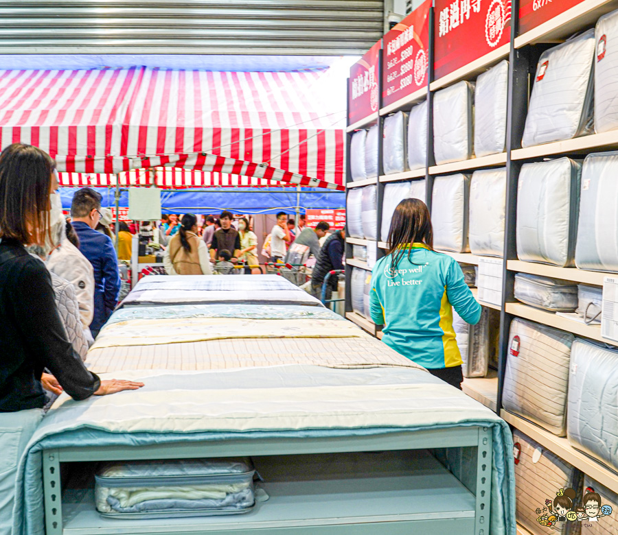 從支撐力好的品牌床墊、各種高度的機能枕頭,到暖心又漂亮的棉被與寢具組,現場應有盡有