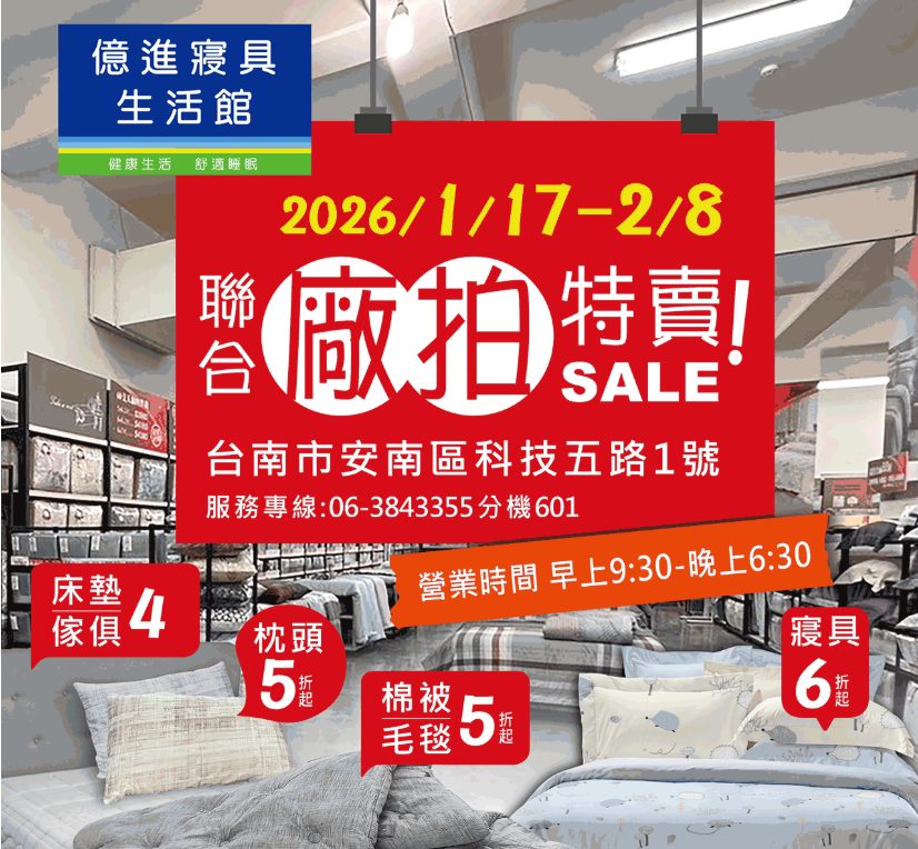 年終撿便宜、過年換新,就來億進寢具 2026 廠拍特賣會,早來早享受,晚來真的會後悔!