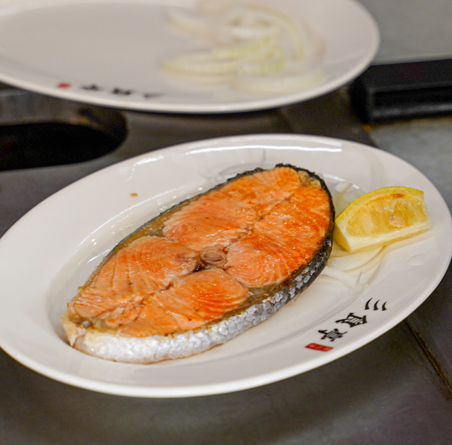 鮭魚很大一片,僅使用鐵板油煎方式吃出最新鮮滋味