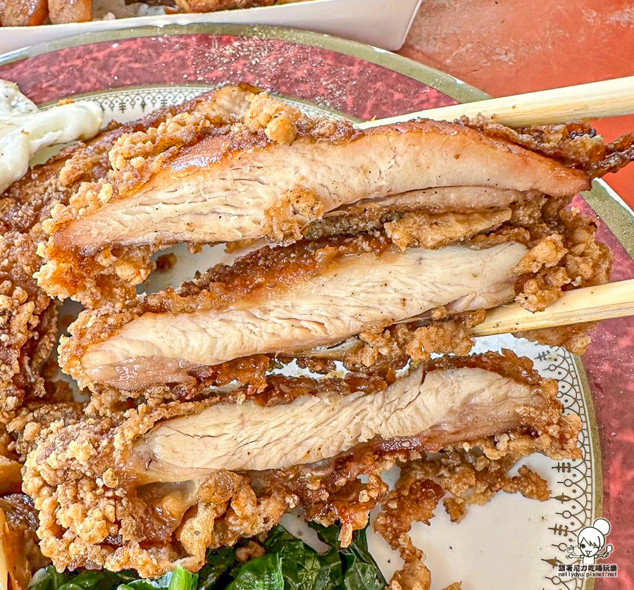 ,醃醬醬油的香氣撲鼻,半隻炸雞腿外面香酥裡面鮮嫩多汁