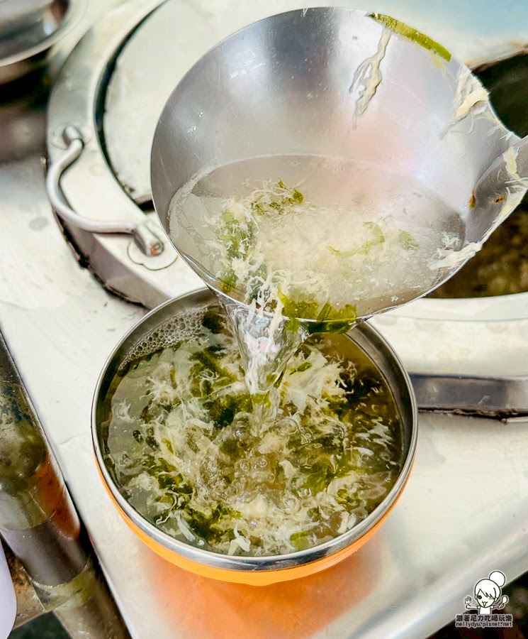 就怕你吃不飽,免費取用的紫菜蛋花湯用雞骨熬煮也太好喝,會忍不住喝了一大碗。