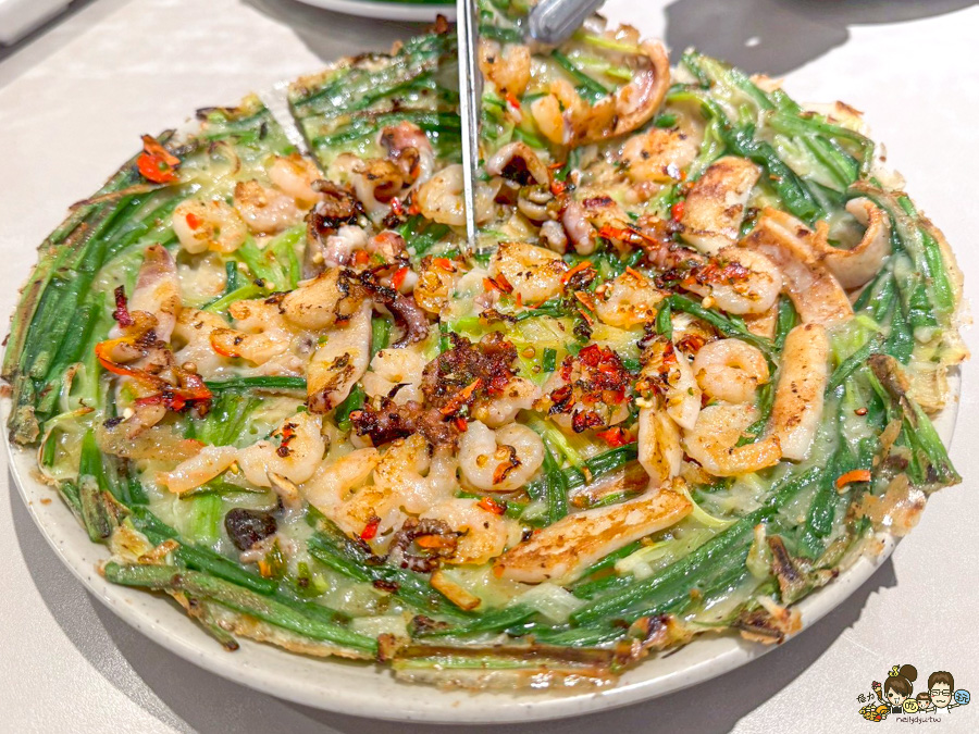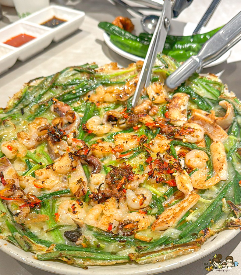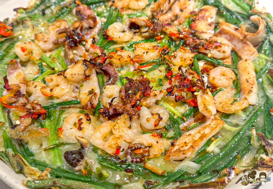 屬於很薄的海鮮煎餅,能吃到海味跟焦香滋味