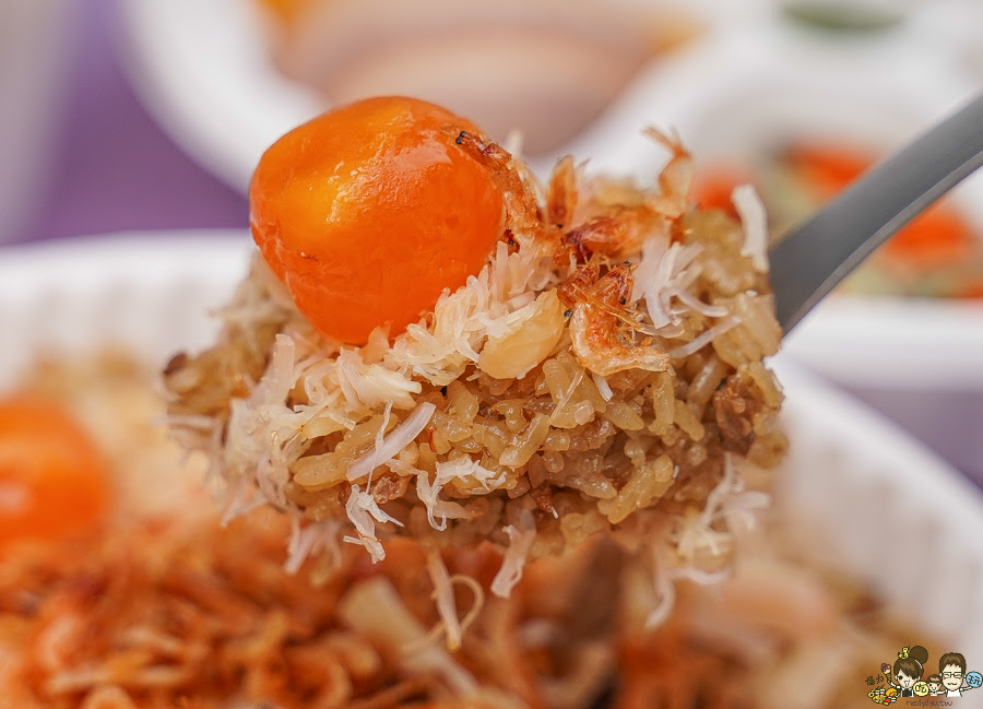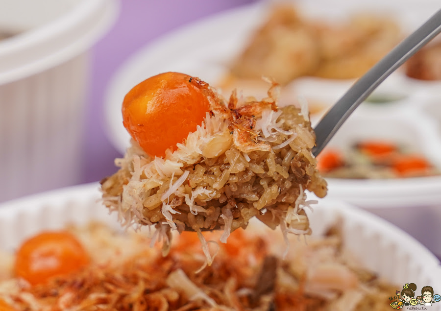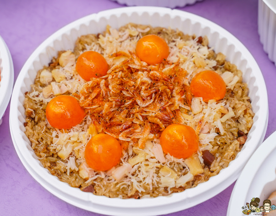米糕上面鋪滿細膩軟嫩好吃的干貝絲,增加海洋甜味,連孩子都說很好吃