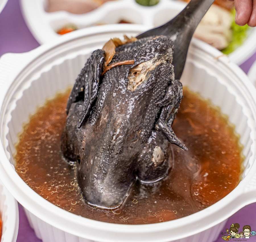 使用整隻烏骨雞精燉,加入七野菇養⽣菇、⾦線蓮補包,帶出菌菇香甜滋味