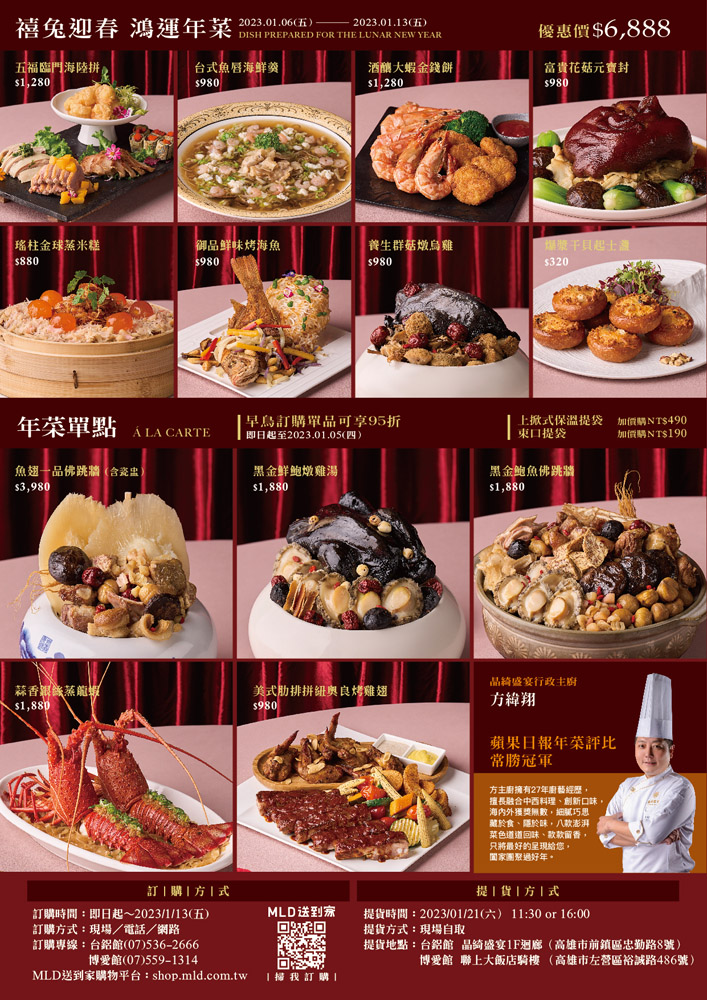 高雄最搶手的網美宴會廳,精選頂級食材用料,配置出台式、港粵、異國風味年菜組合