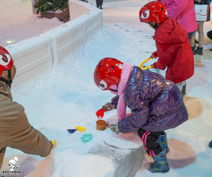 孩子還可以暢玩挖雪,顆粒的雪霜、挖挖挖