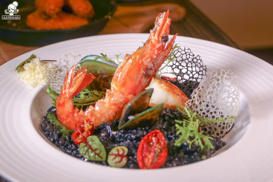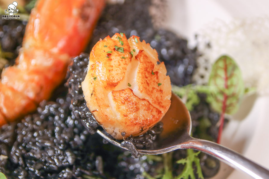 用料上很豪邁,有天使紅蝦、干貝、紐西蘭淡菜,還有我愛的墨魚燉飯