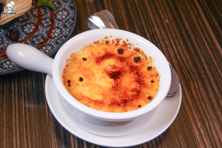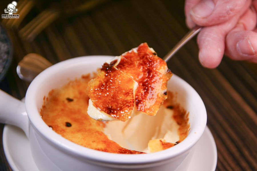 帶有酒香氣味的烤布蕾,使用香草莢製作,很香濃的香草滋味