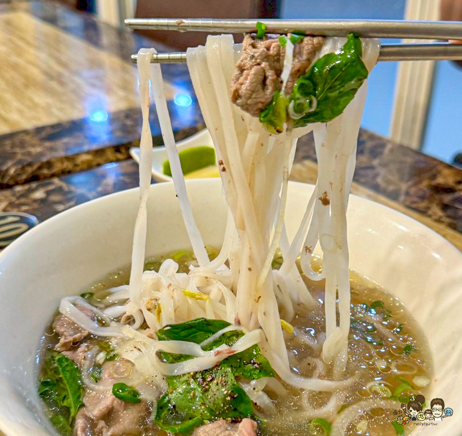 湯頭帶有牛肉香氣提味,使用生牛肉下去沖帶出牛肉味
