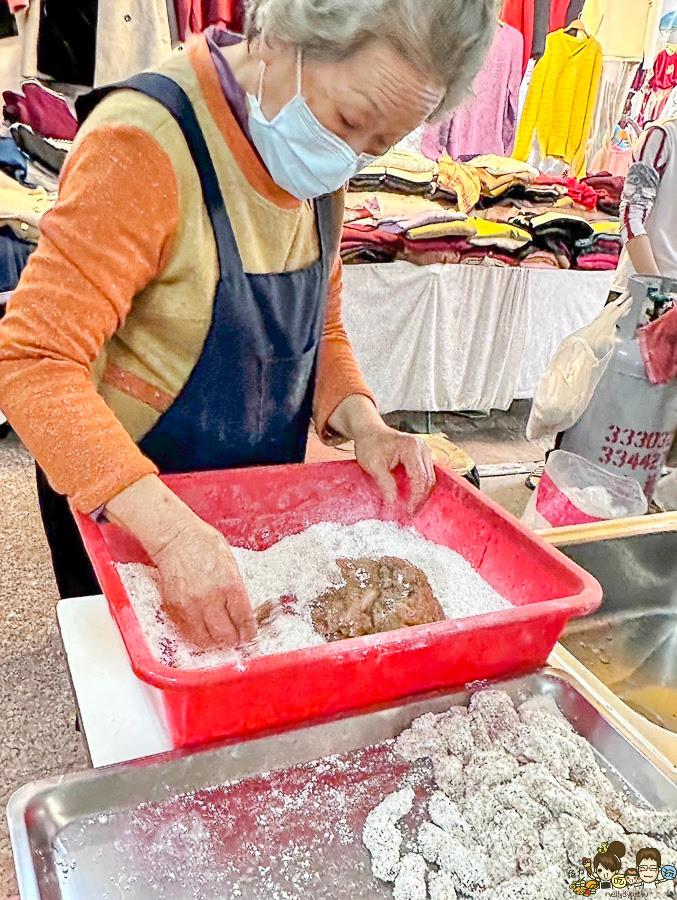 雖然在傳統市場裡面營業,她們家的炸魚塊都是自己從新鮮𩵚魠魚開始處理的