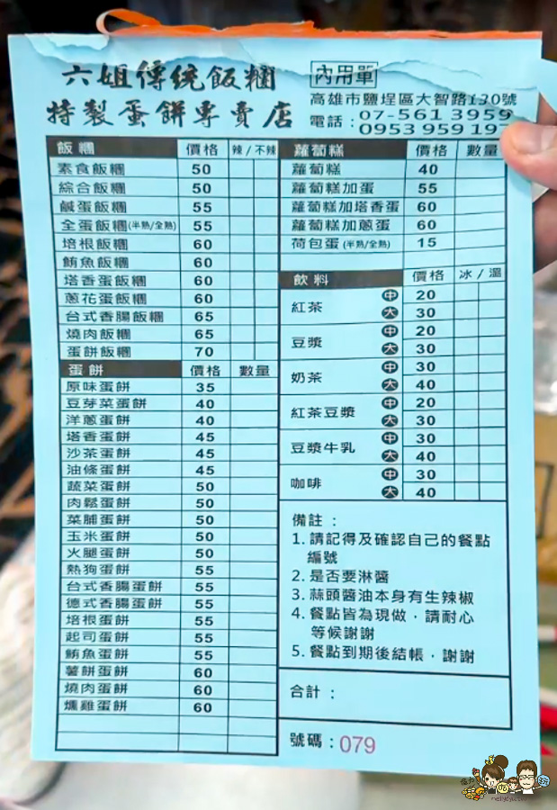 六姐傳統飯糰特製蛋餅專賣店 菜單