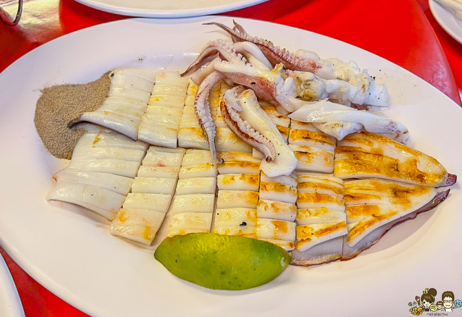 招牌香腸、烤肉拼盤、炸魚條、火海蝦、螃蟹、花枝丸、烤豬心、蛤蠣都必點