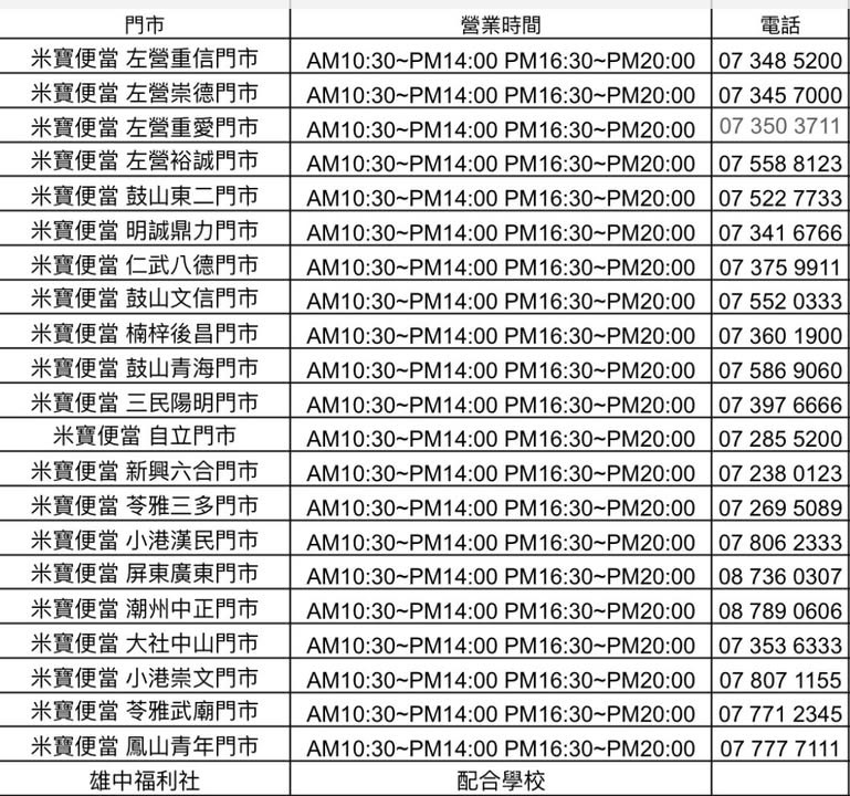 連高雄雄中的便當都是米宝弁当所供應合作的