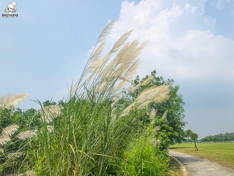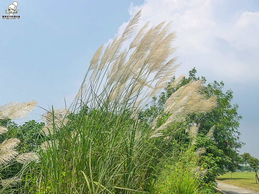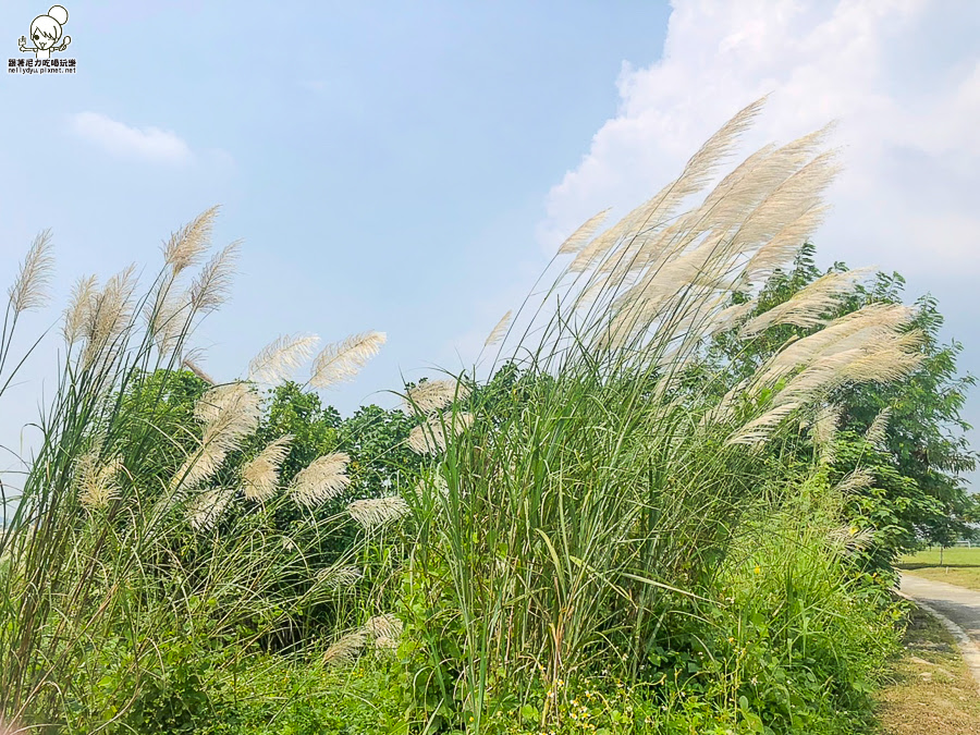 綠油油搭配白皙芒草,太夢幻了~加上風吹左右飄逸,整個好美、令人陶醉
