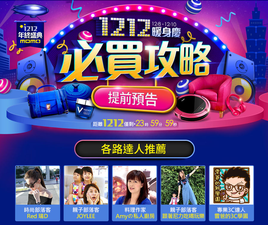 雙12檔期從為12/08~12/10開啟暖身慶,每天都有驚喜優惠:https://momo.dm/6AvUaf