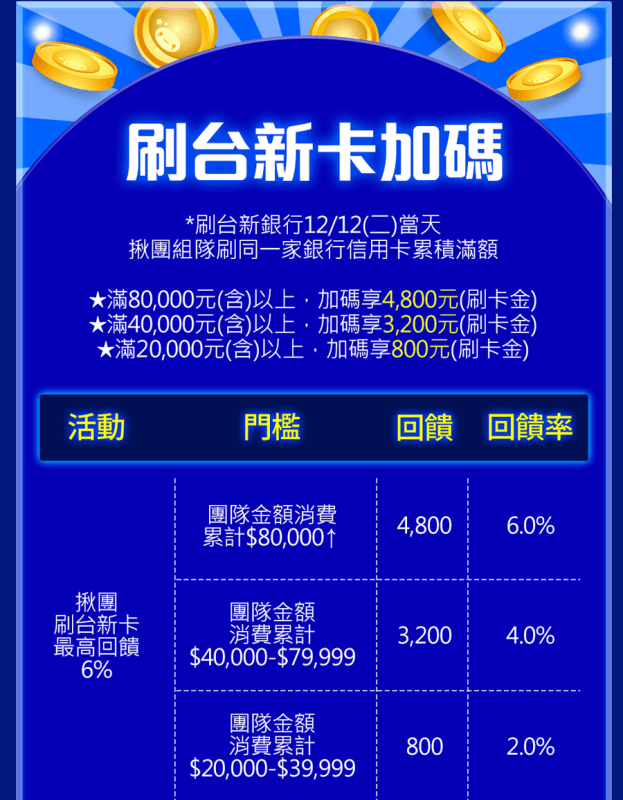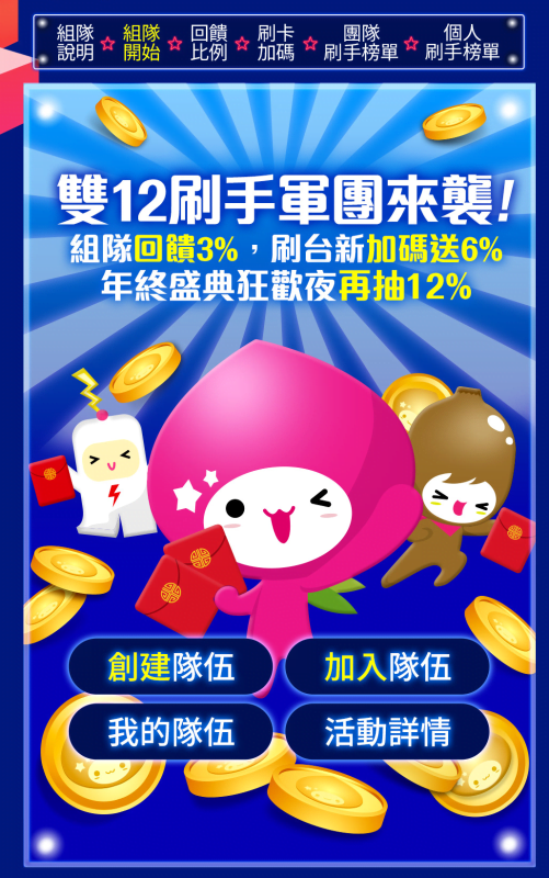 雙12組隊賺紅利金,組隊最高回饋12%(超高的回饋%)