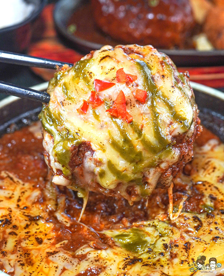 日式漢堡排不僅有起司熔岩,還加上了日式風味的抹茶美乃滋