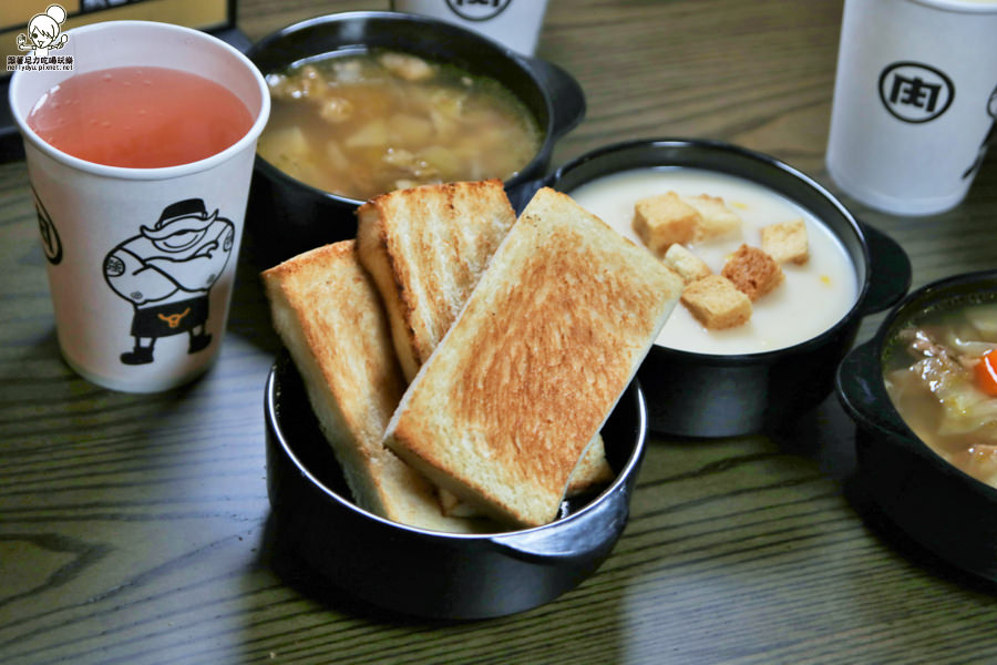 肉肉四大絕配:飲品、冰淇淋、湯品、吐司,自助式自行拿取、無限暢飲
