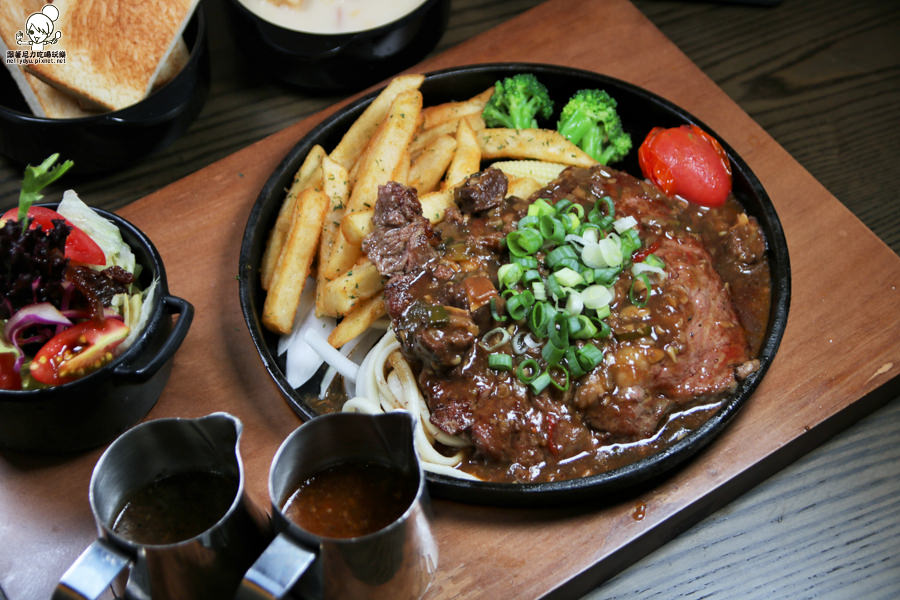 以前搭配的是半熟蛋,目前都更改為脆薯唷~招牌人氣推薦必點肉肉先生牛排