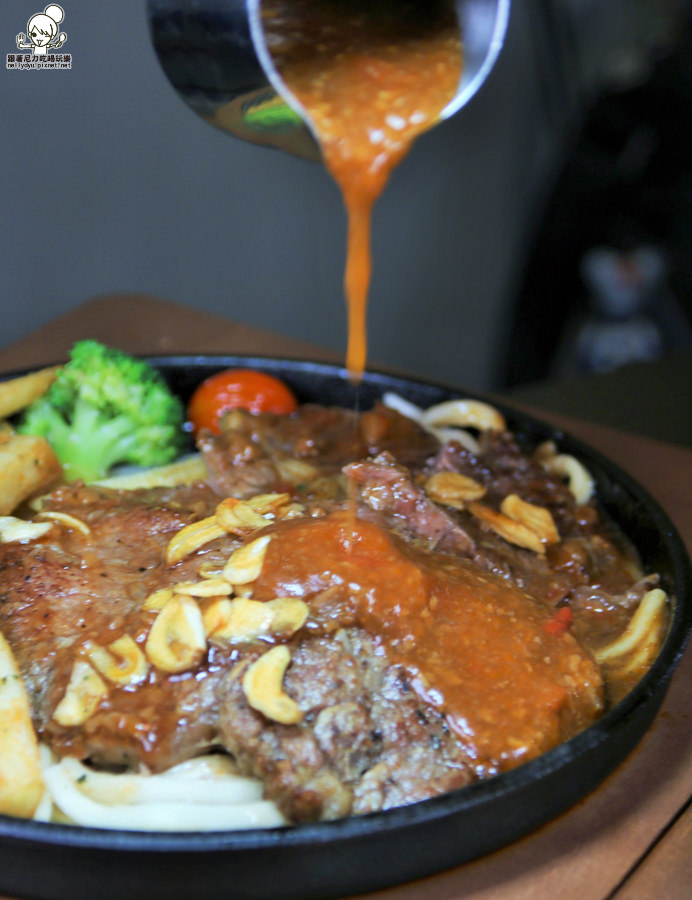 使用的是鐵鑄盤,可以保持麵食、肉肉的溫度