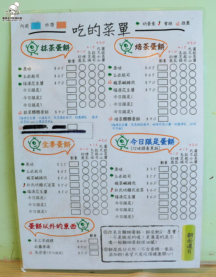 牆壁刊版上面還有限定的蛋餅餅皮及口味,都可以嘗鮮唷~