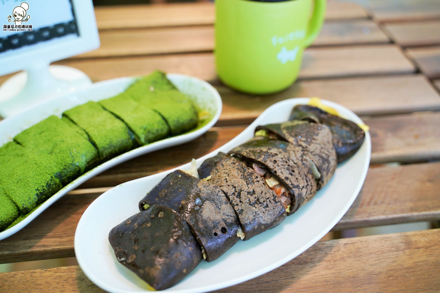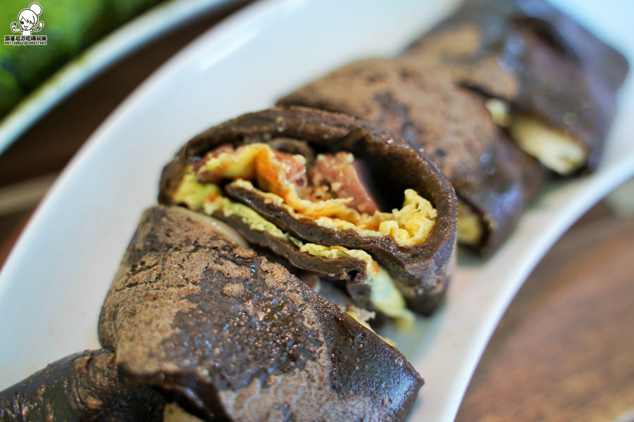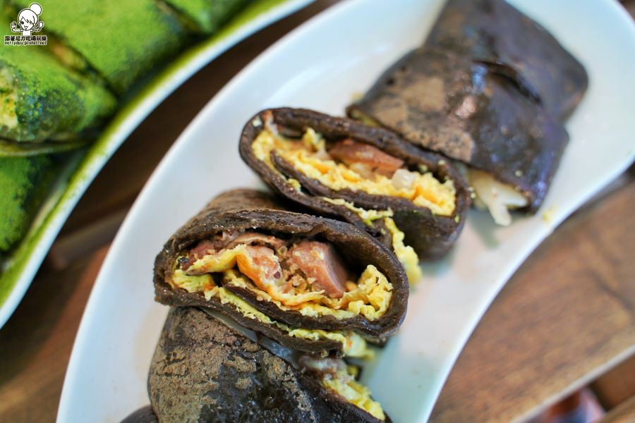 黑嚕嚕的蛋餅帶有焙茶香氣,蛋餅皮很像河粉QQ口感~