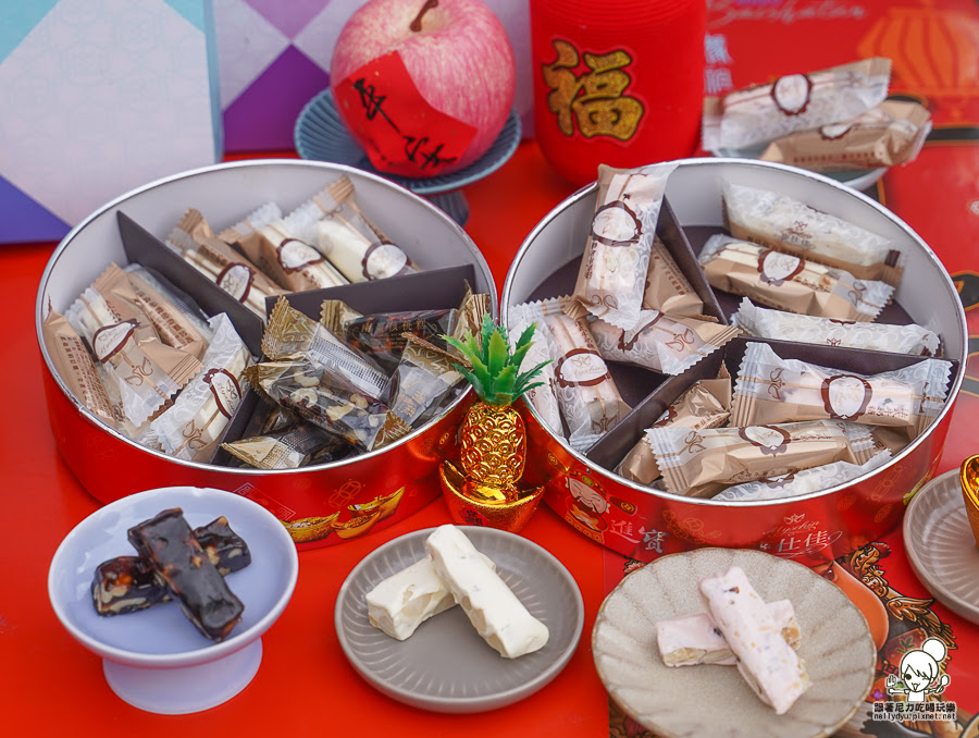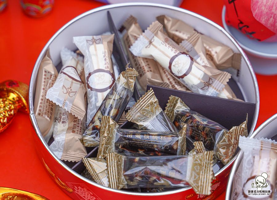 打開來不用在裝盤,隨手可取用的蔓越莓/杏仁果/夏威夷豆牛奶糖、南棗核桃糕