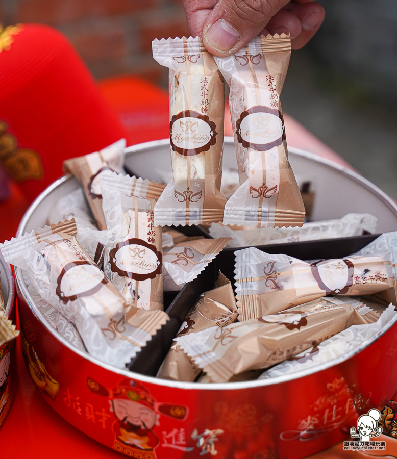 側邊包裝也很有喜氣,很多婆婆媽媽都買來拜拜、過年再分送喜糖給親戚朋友一起討福氣