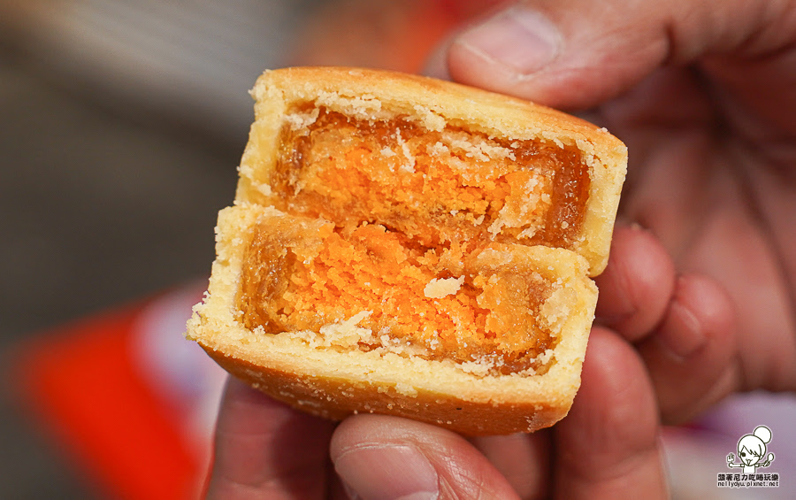 吃起來有酸甜鹹香滋味,裡面夾入了蛋黃