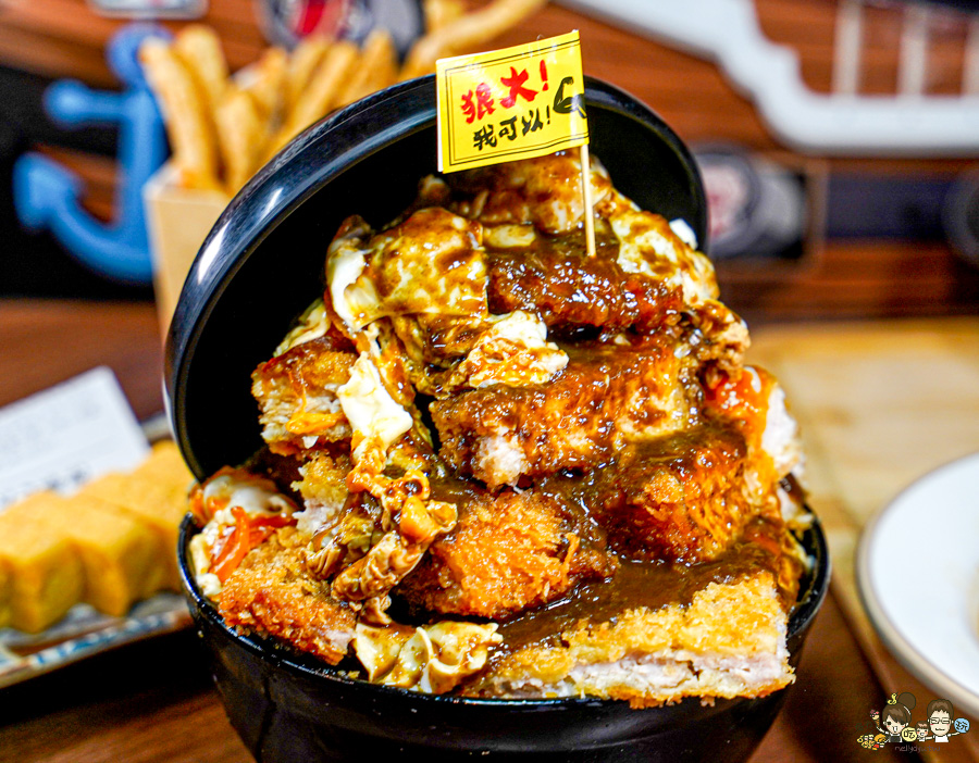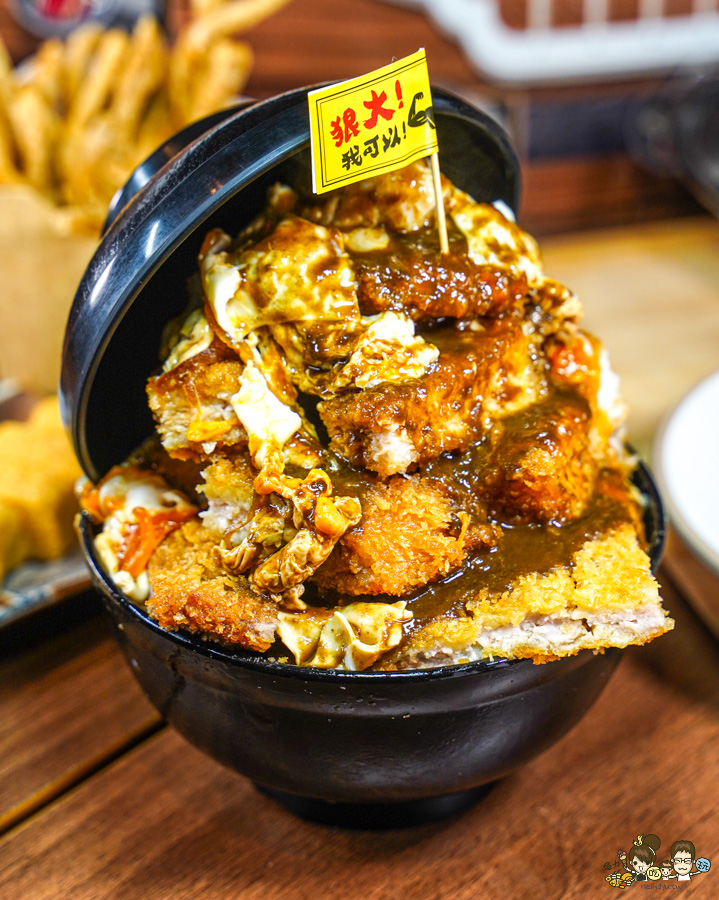 挑戰全台最浮誇的咖哩炸豬排丼飯,不僅是兩大塊的豬排