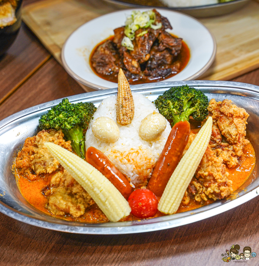 當濃郁咖哩淋下的瞬間,蒸氣與香氣噴發,每一口都是熱量爆炸的極致享受