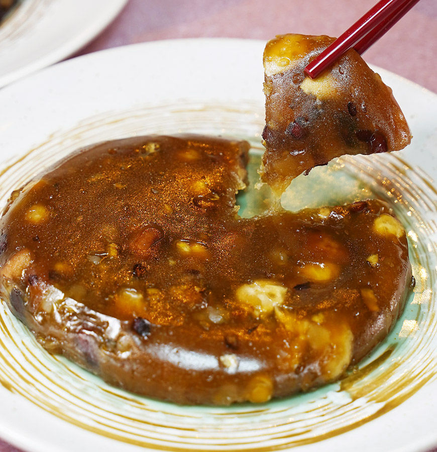 黑糖蓮子八寶軟式年糕年糕裡面的用料很澎派,每一口都可以吃到多口感餡料,軟Q不黏牙