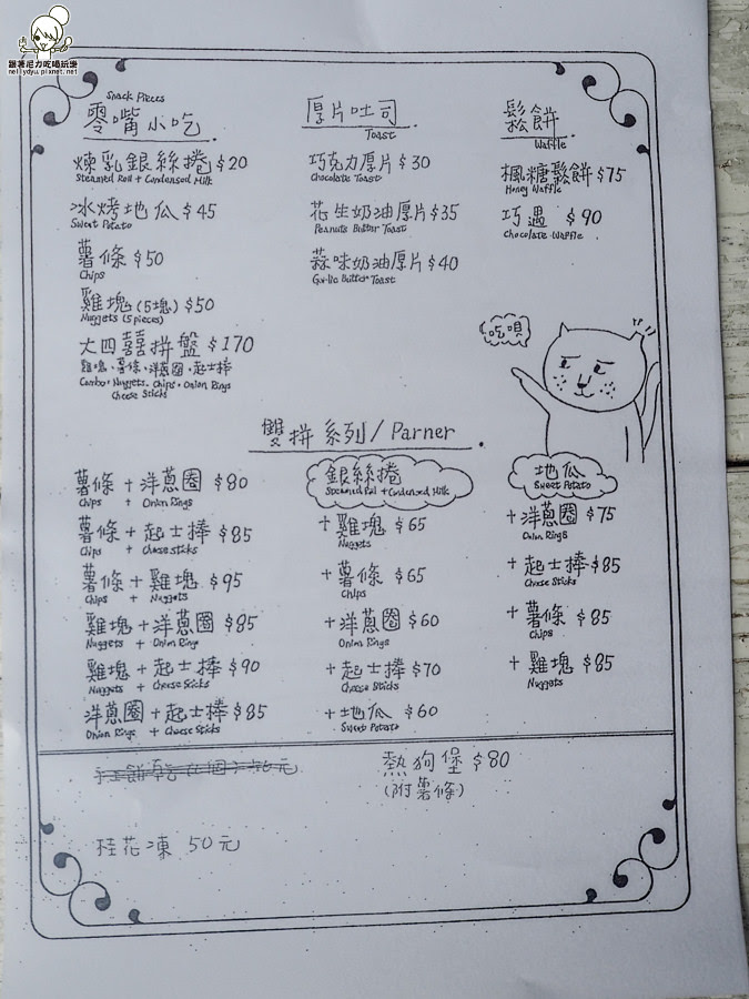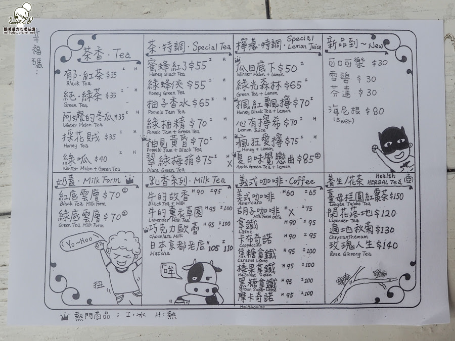萊加呵Nine J菜單好可愛唷~~~價位好親民唷!飲料30元起跳