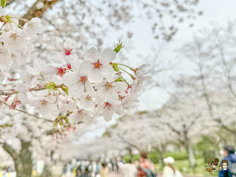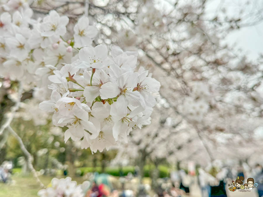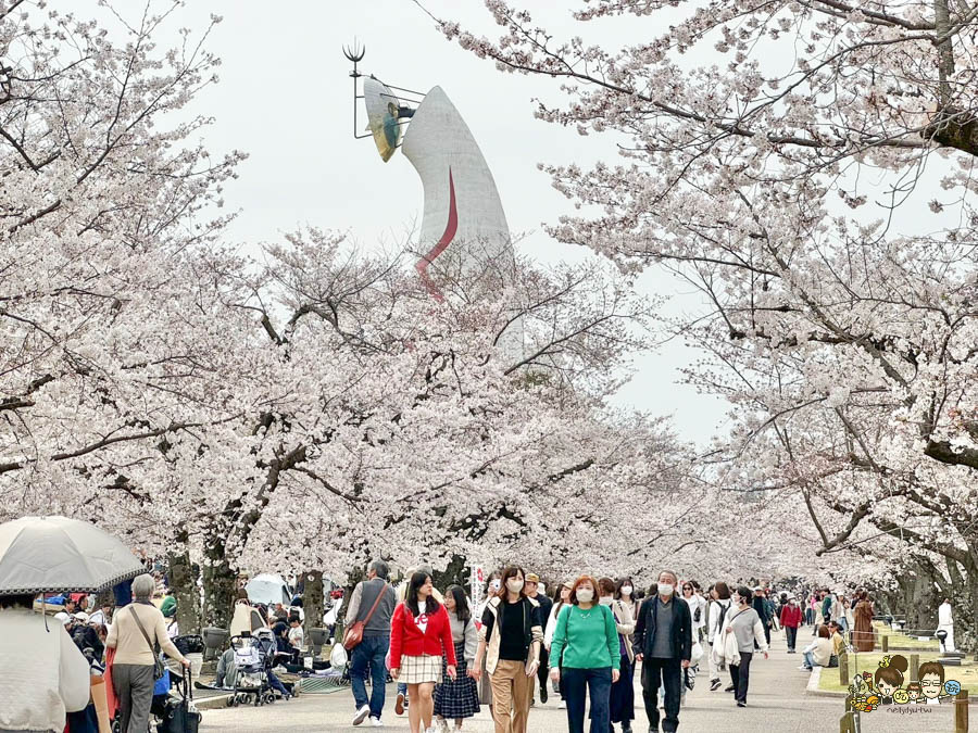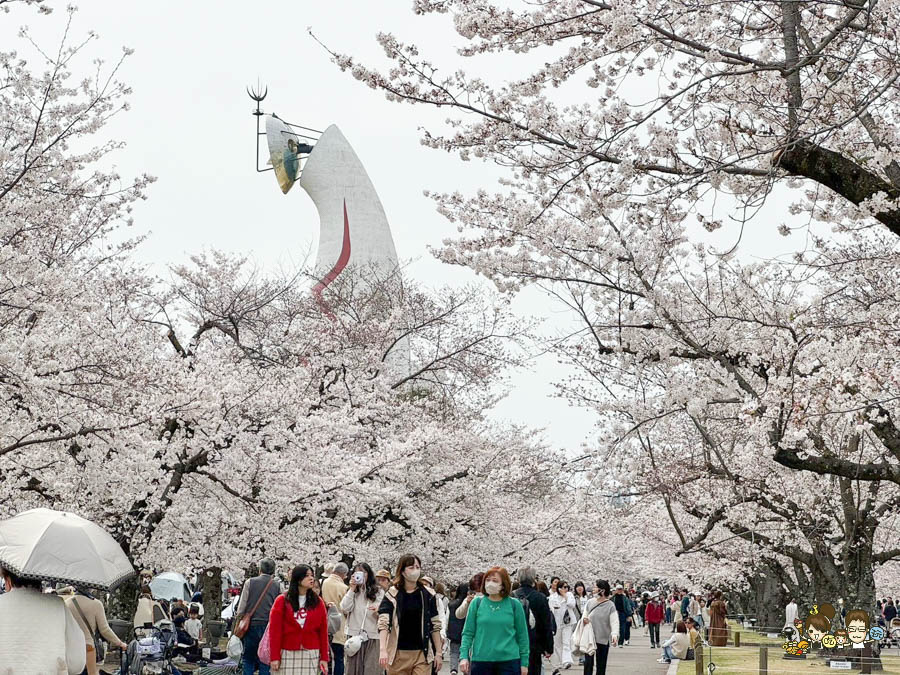 萬博紀念公園,有彼岸櫻、染井吉野櫻等9種、超過5500株的櫻花