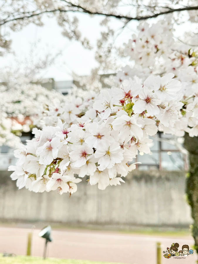 白色帶一點粉嫩,盛開的季節有夠浪漫