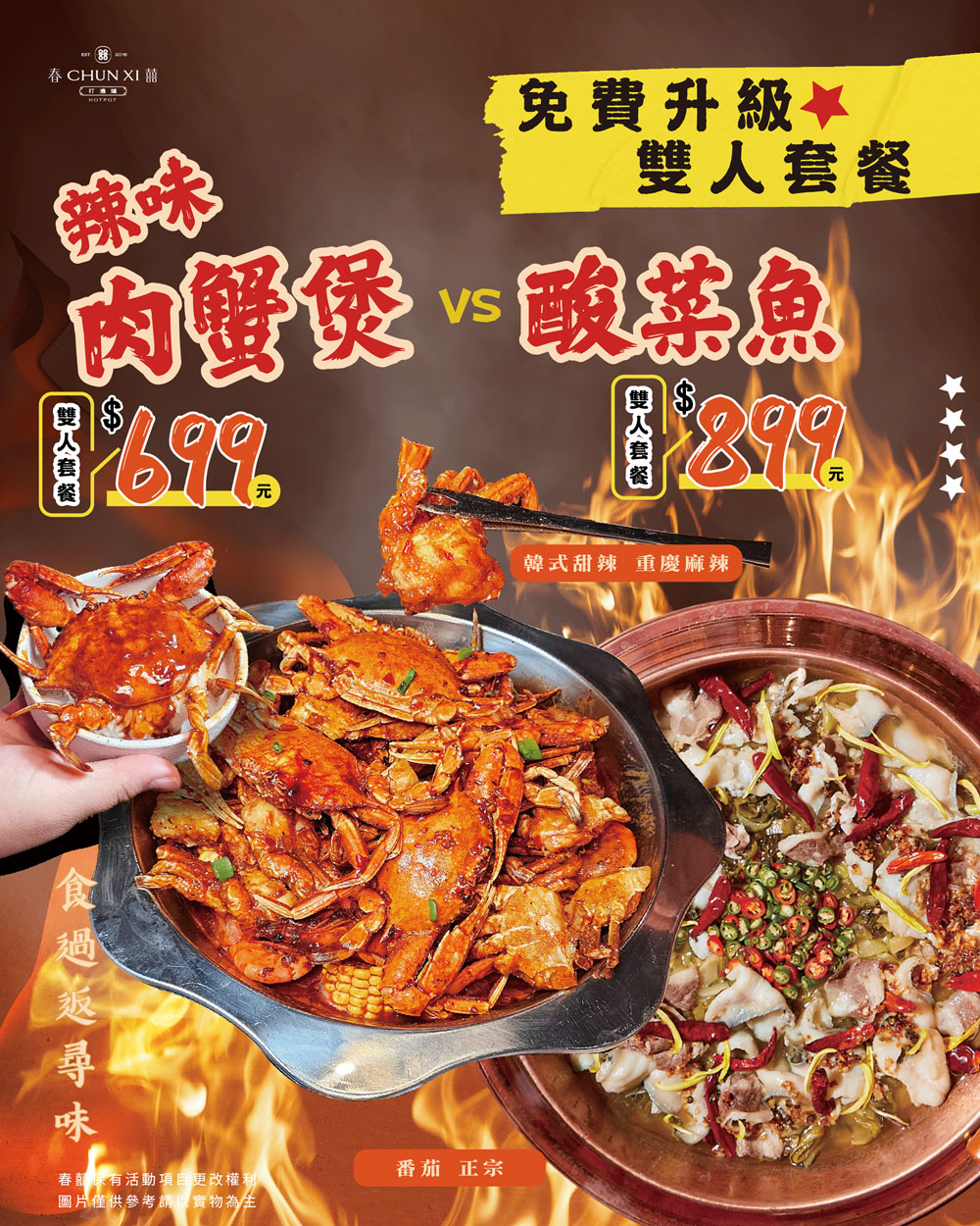 春囍最新鍋物:韓式辣味肉蟹煲、重慶麻辣肉蟹煲
