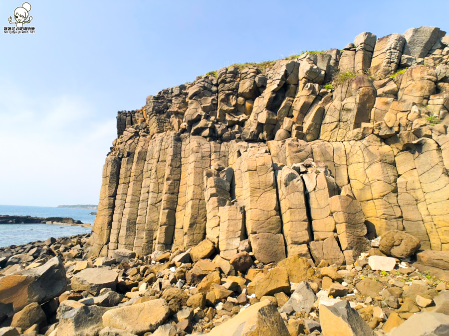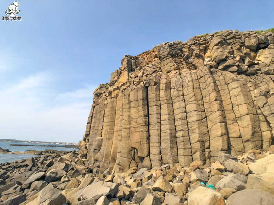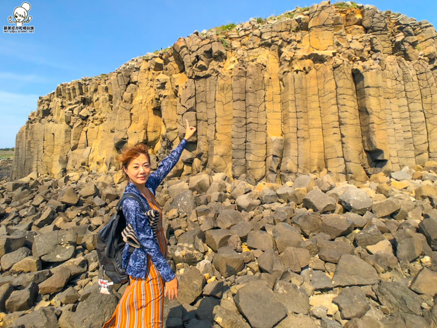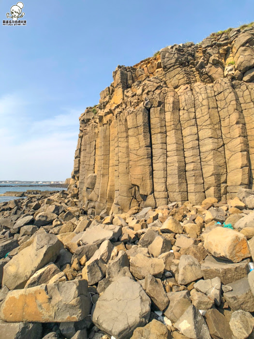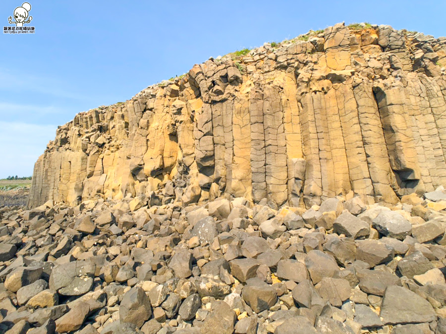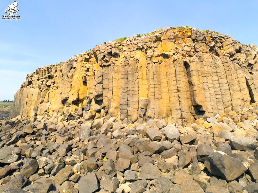 看起來很像許多石頭往下墜落的瀑布,獨特地形、岩石的池西柱狀玄武岩