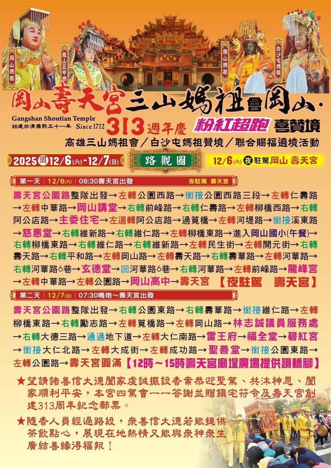 當晚駐駕紅毛港朝天宮,首度駐駕紅毛港,12月6日至7日 前往岡山賜福平安遶境
