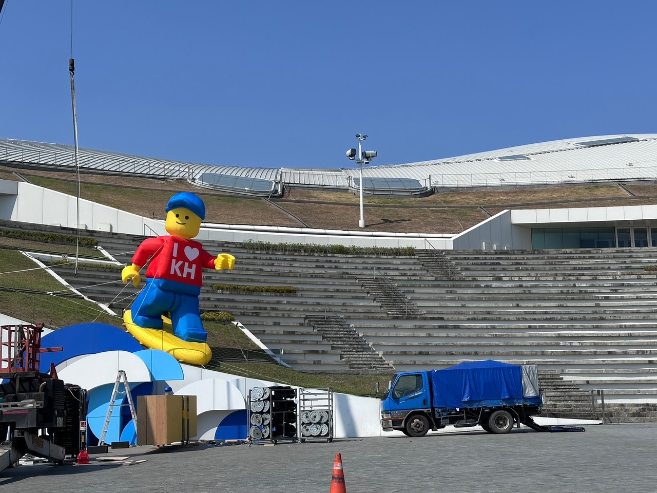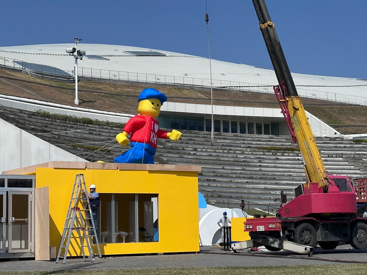 一出站就能看到超巨大的樂高人