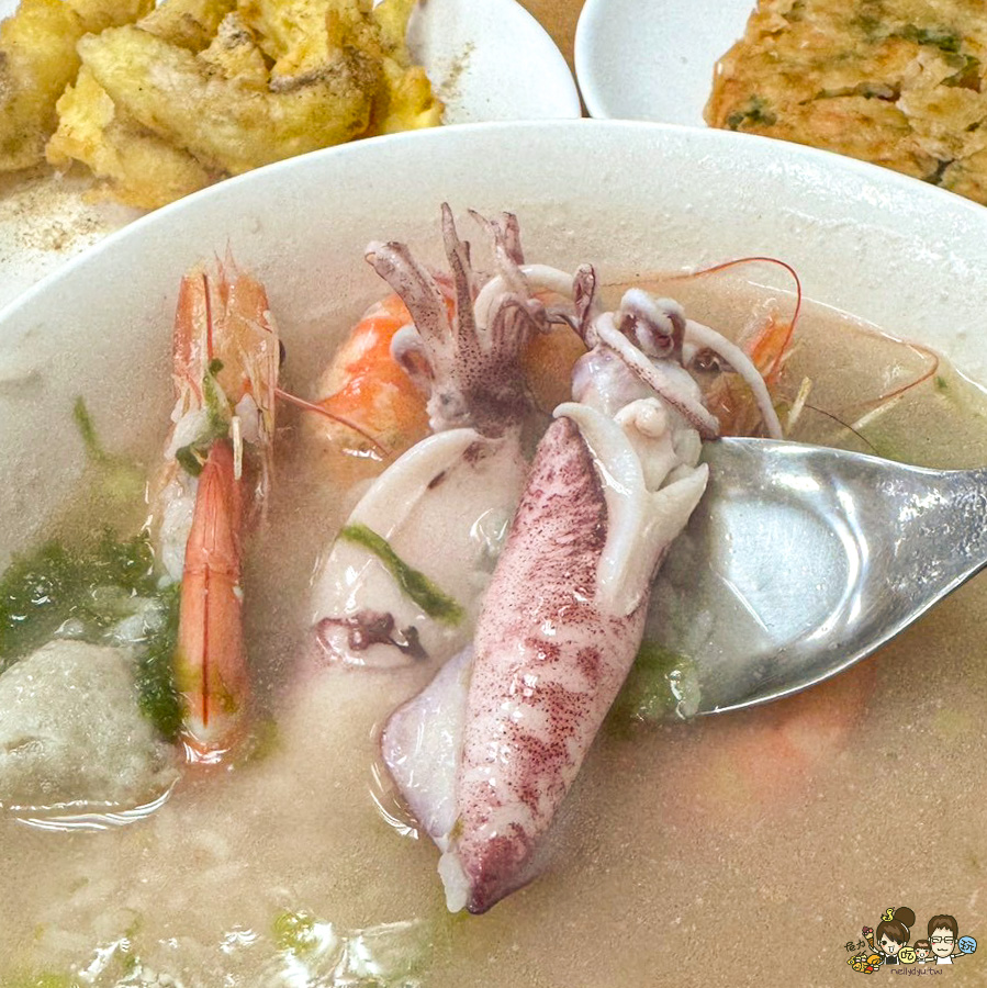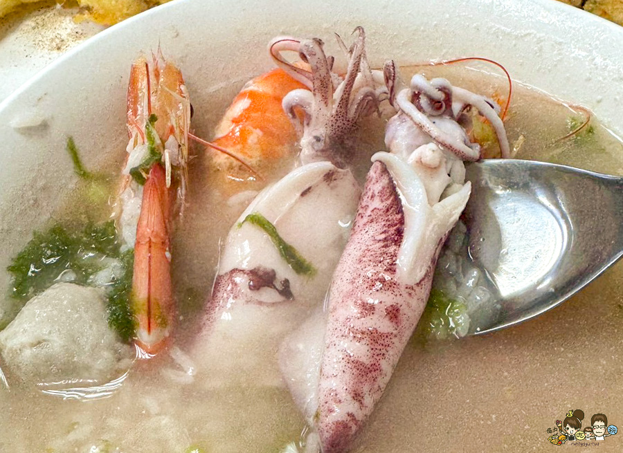 裡面有花枝漿、花枝、海菜,不擔心過於甜膩還帶有鮮味