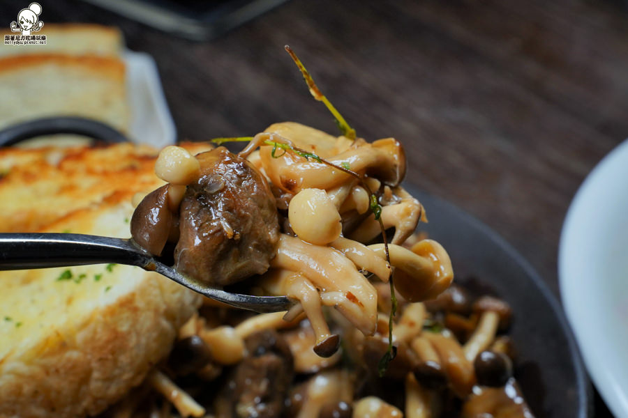 蕈菇吸附醬汁,可單吃或者搭配義式香料麵包一起享用